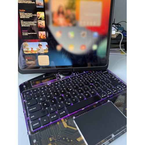 I’m using this Tiaota transparent keyboard case on my iPad Pro 13-inch, and it fits beautifully! The 360° rotating design is super convenient for switching between typing, watching, and drawing modes. The trackpad is smooth and responsive, and the 7-color backlit keyboard feels premium — perfect for working in low light. The transparent white design looks modern and elegant, showing off the iPad’s original style while still offering solid protection. The Bluetooth connection is quick and stable, and the battery life on the keyboard lasts for days. This case has completely turned my iPad into a lightweight laptop — stylish, practical, and fun to use. Highly recommend for anyone wanting a versatile, high-quality keyboard case!
