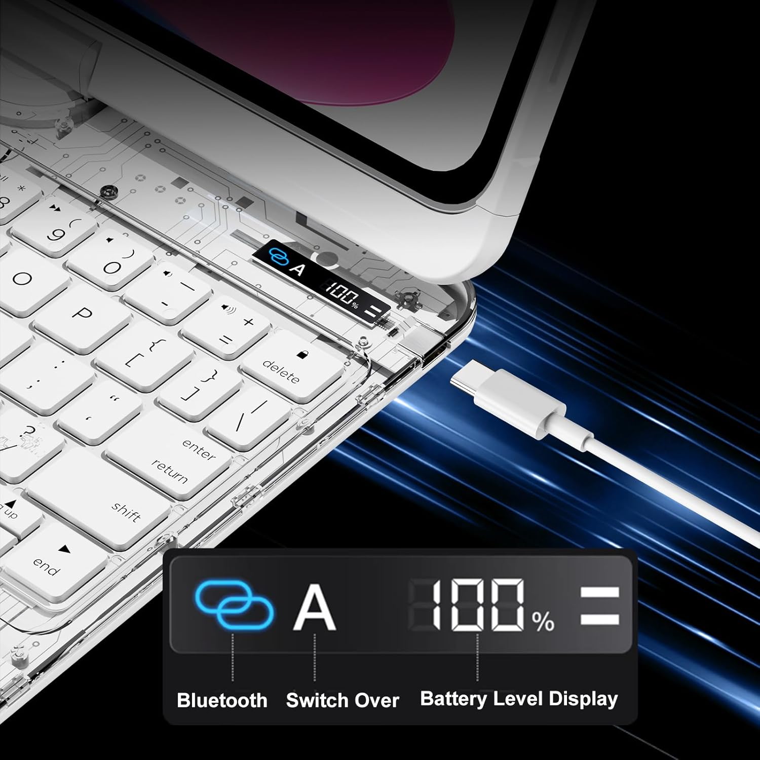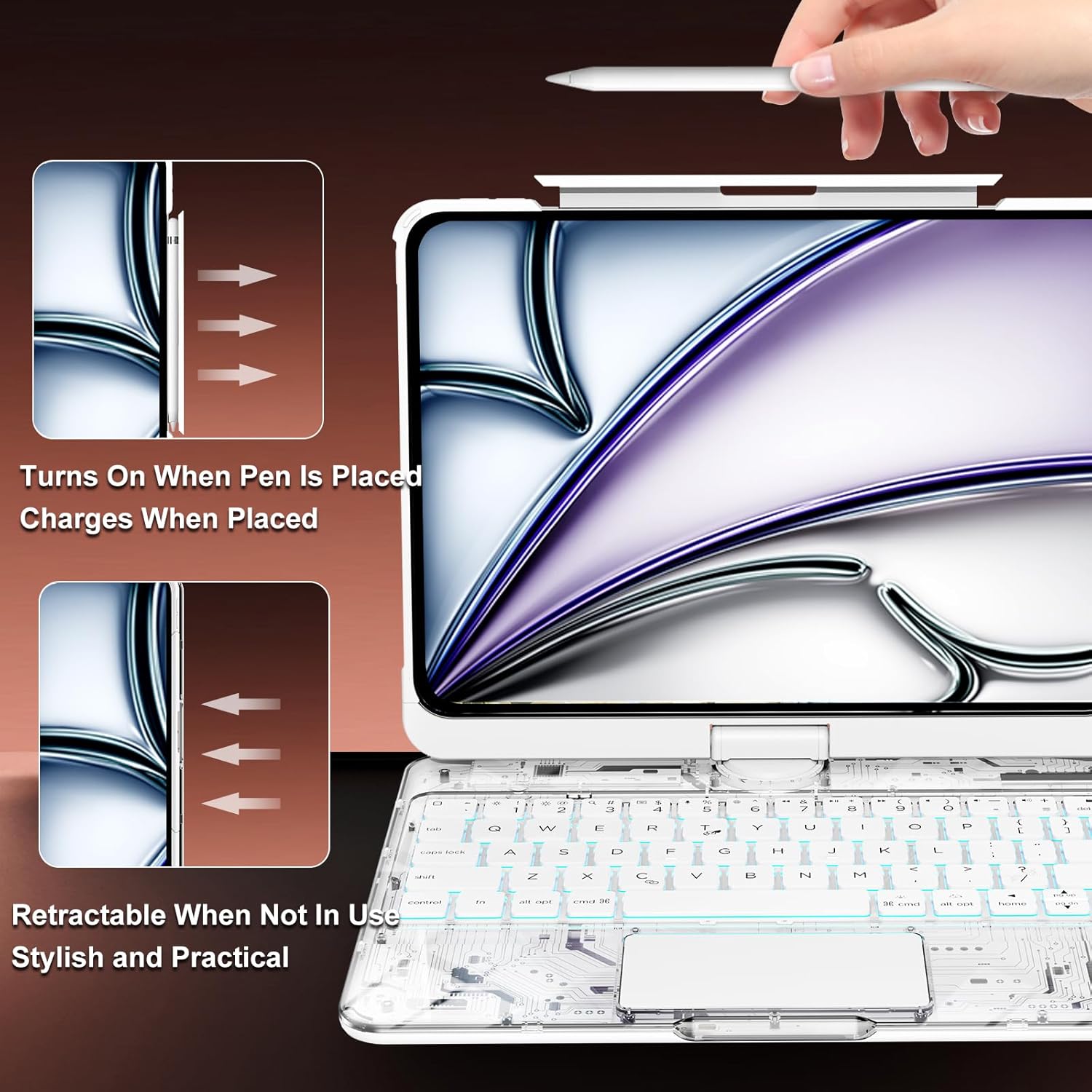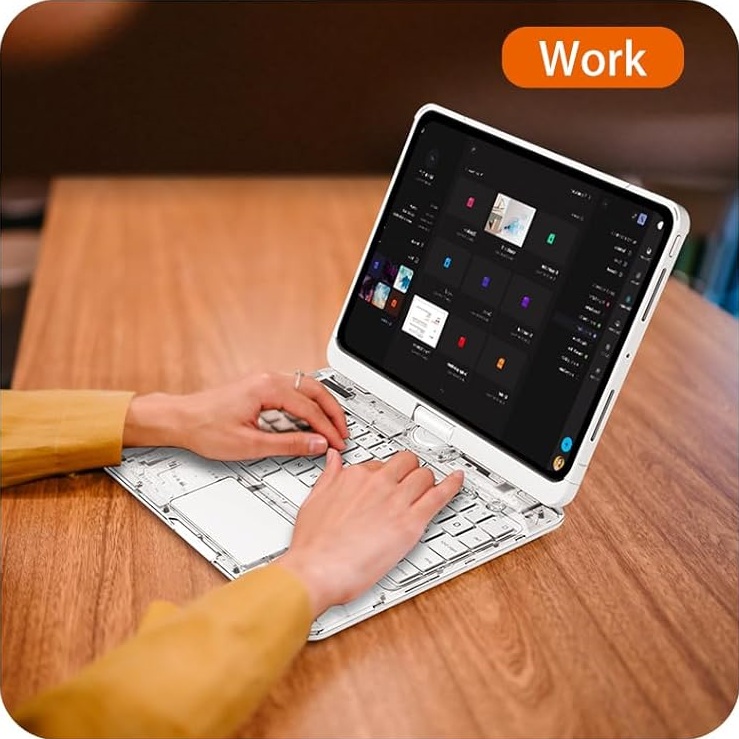 I’m using this Tiaota transparent keyboard case on my iPad Pro 13-inch, and it fits beautifully! The 360° rotating design is super convenient for switching between typing, watching, and drawing modes. The trackpad is smooth and responsive, and the 7-color backlit keyboard feels premium — perfect for working in low light. The transparent white design looks modern and elegant, showing off the iPad’s original style while still offering solid protection. The Bluetooth connection is quick and stable, and the battery life on the keyboard lasts for days. This case has completely turned my iPad into a lightweight laptop — stylish, practical, and fun to use. Highly recommend for anyone wanting a versatile, high-quality keyboard case!
