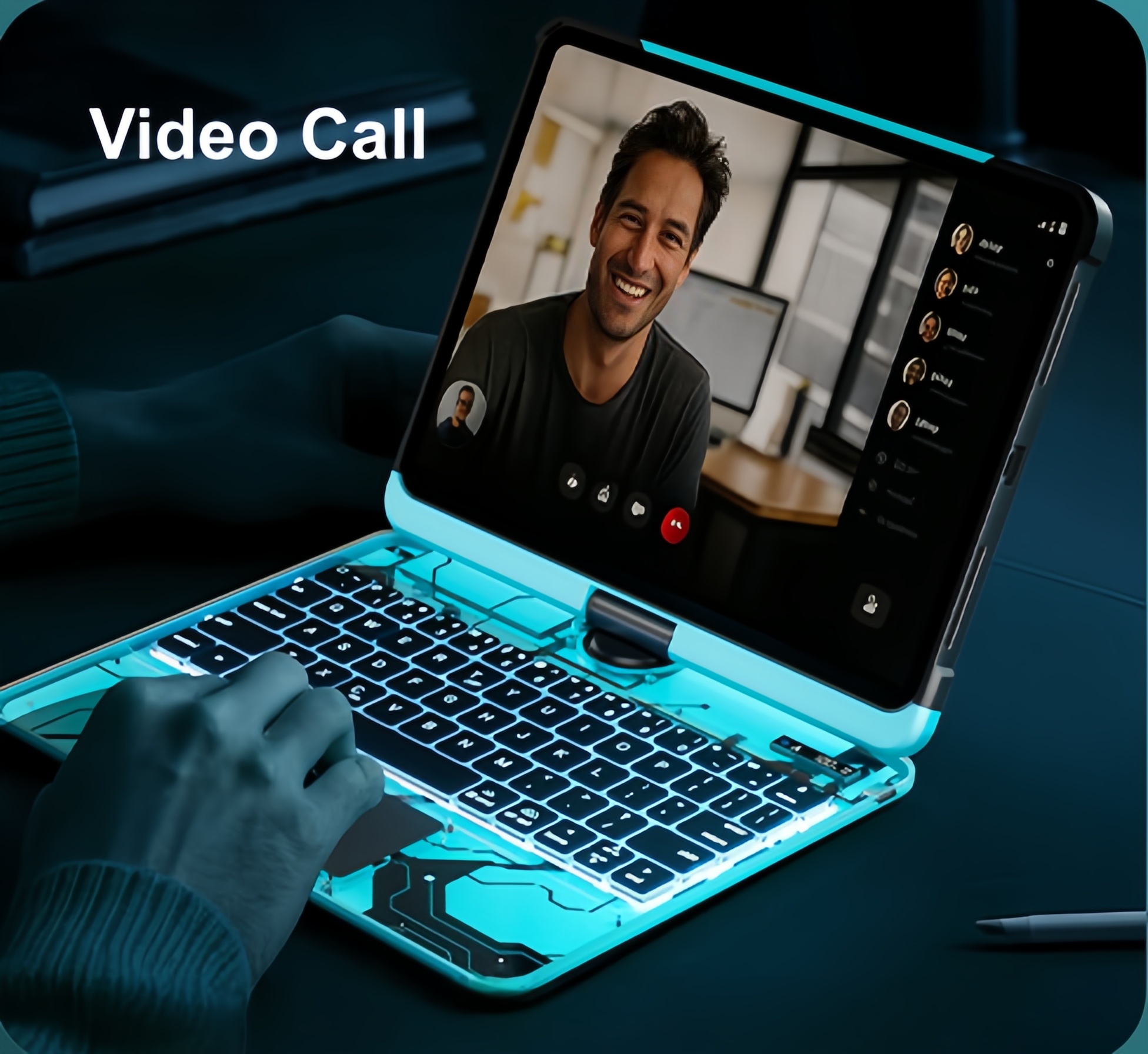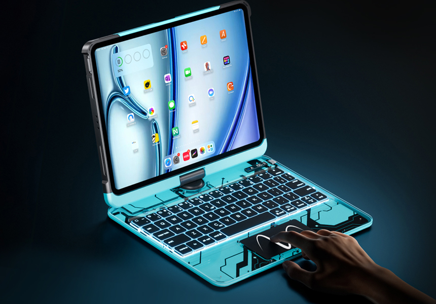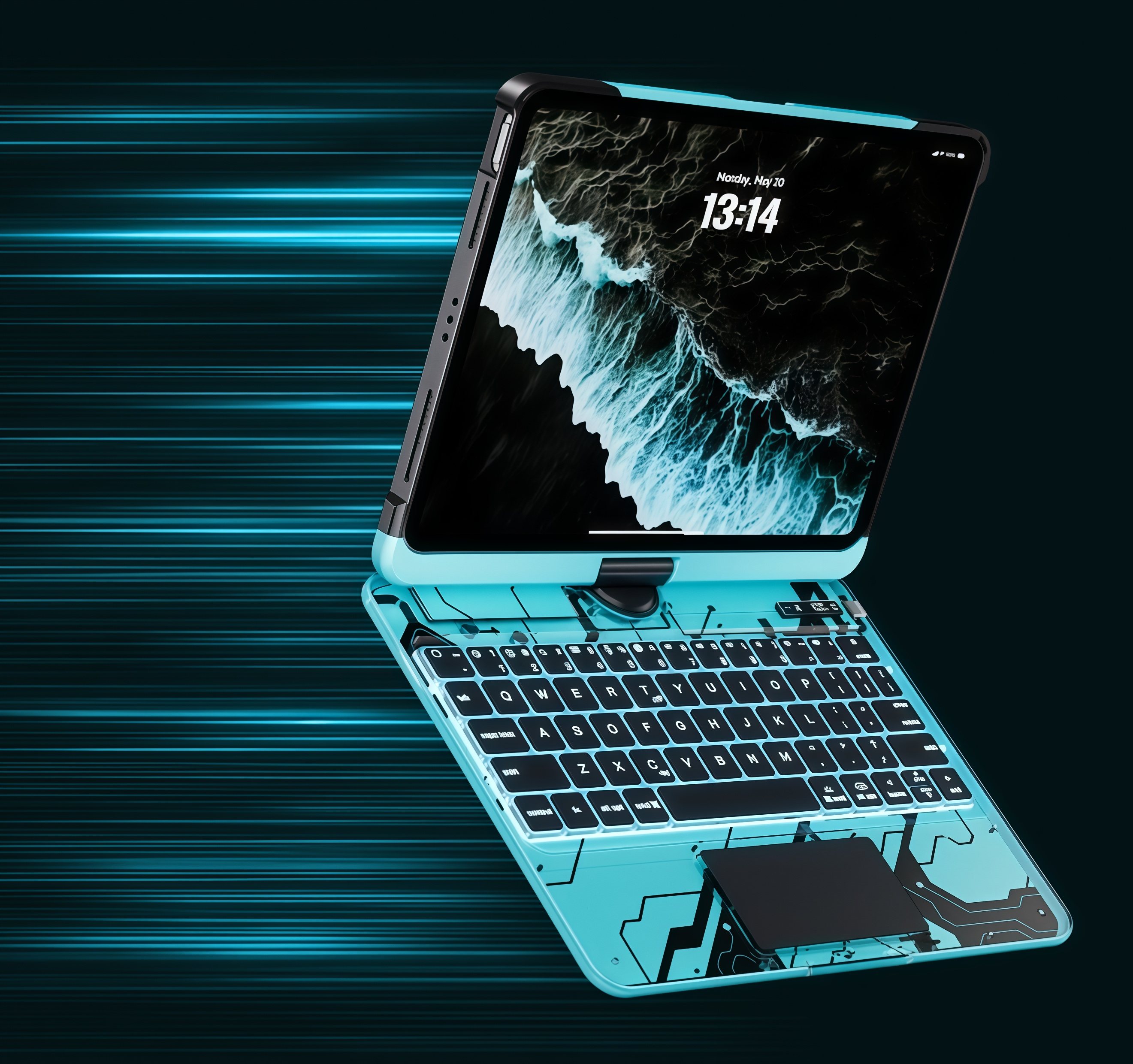 Transparent Blue Backlit iPad Keyboard Case, Suitable for iPad Tablets, 7-Color Backlit,Magic Wireless Keyboard, 360°Rotating,with trackpad,Pencil Holder