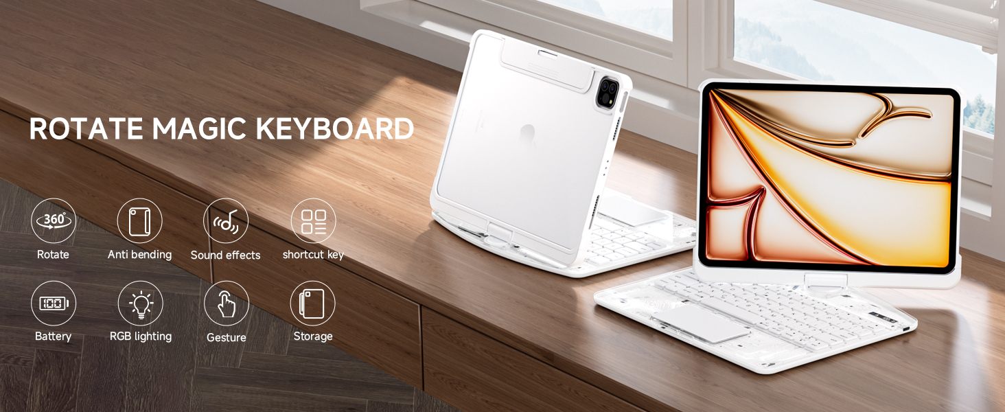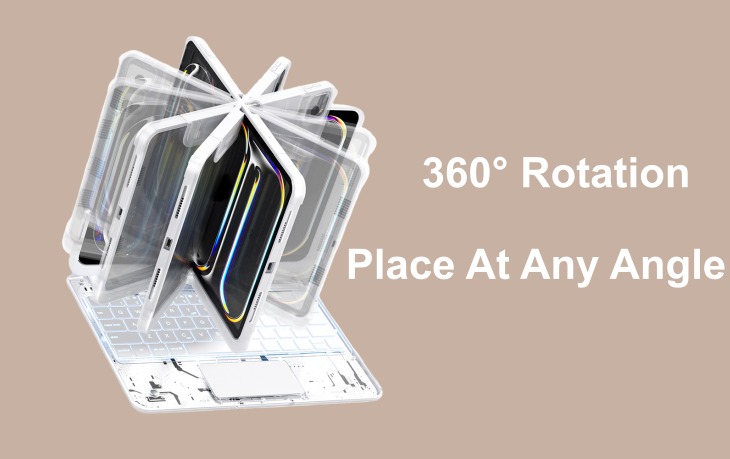 Backlit iPad Keyboard Case, Suitable for iPad Tablets, 7-Color Backlit,Magic Wireless Keyboard, 360°Rotating,with trackpad,Pencil Holder