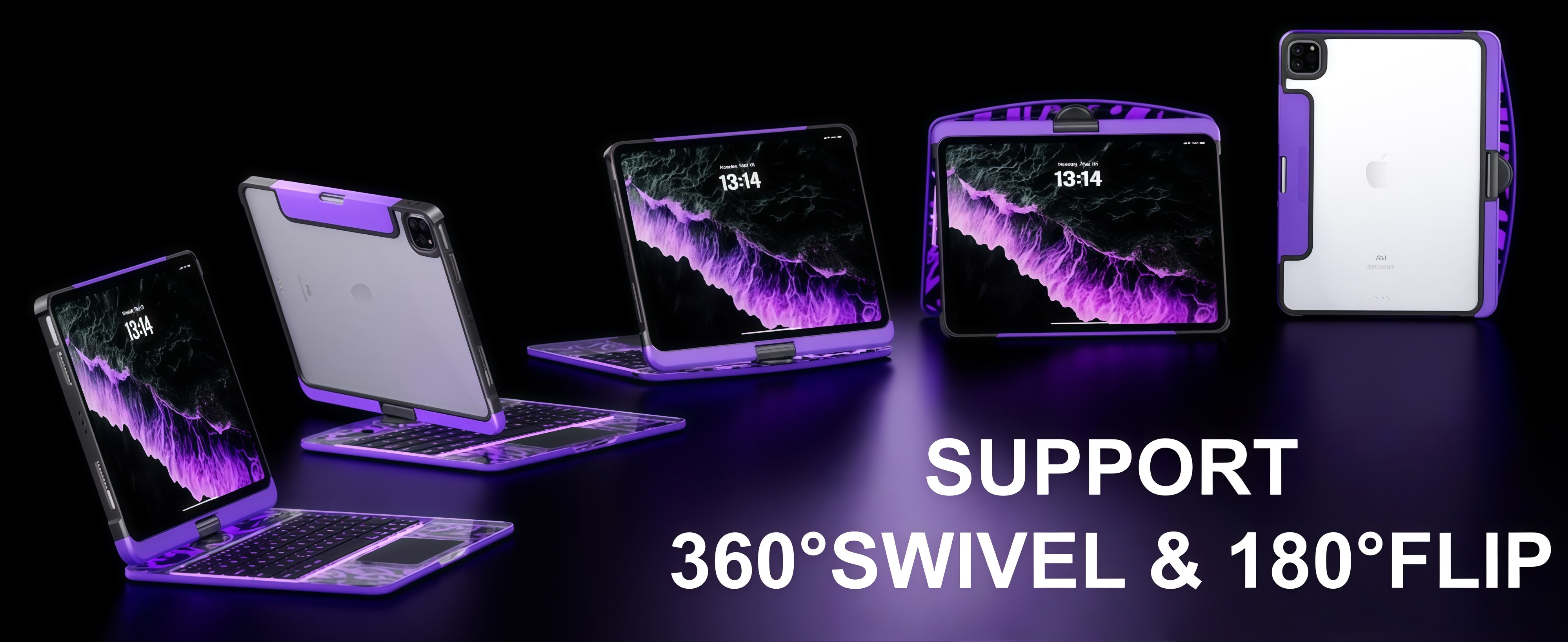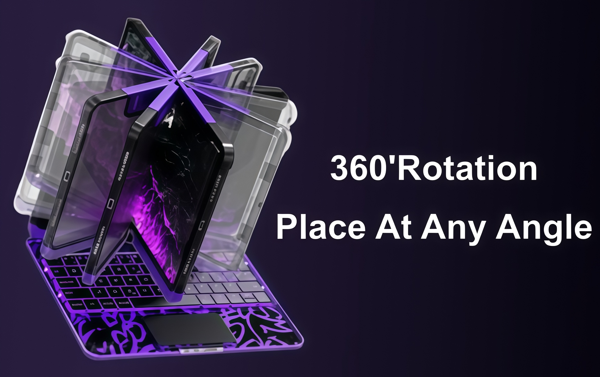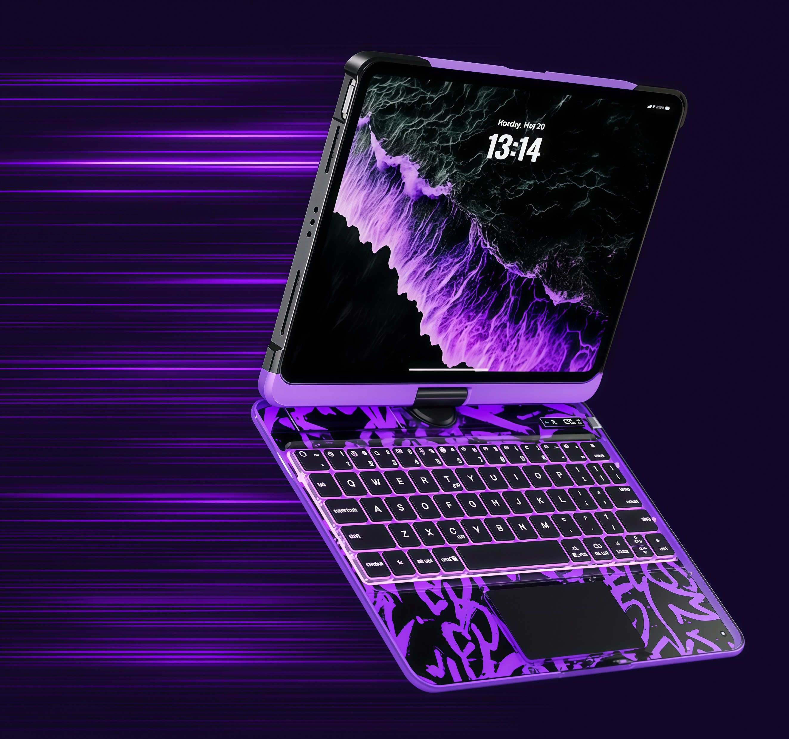 Write a review For Transparent Purple Backlit iPad Keyboard Case, Suitable for iPad Tablets, 7-Color Backlit,Magic Wireless Keyboard, 360°Rotating,with trackpad,Pencil Holder
