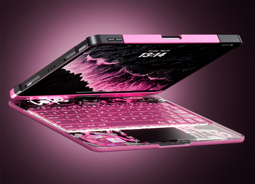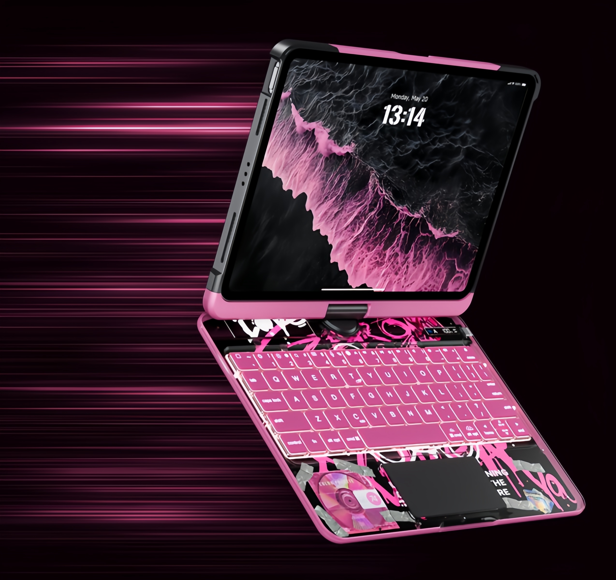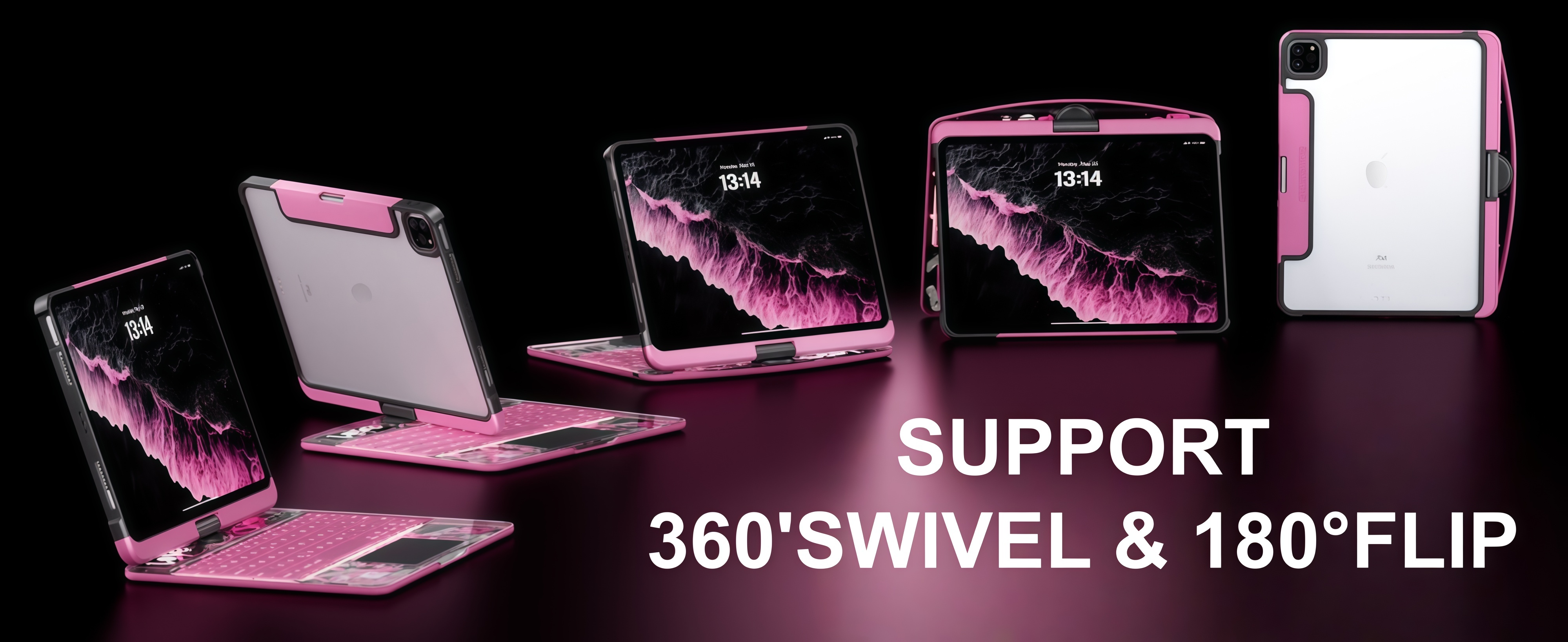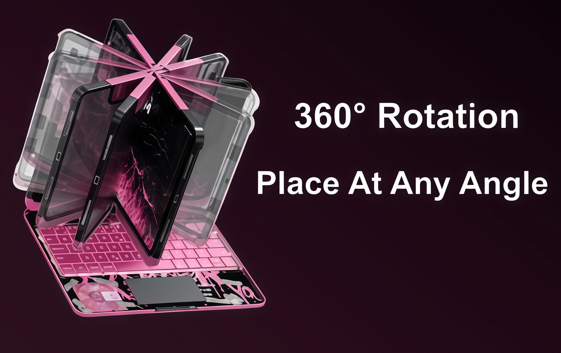 Transparent Pink Backlit iPad Keyboard Case, Suitable for iPad Tablets, 7-Color Backlit,Magic Wireless Keyboard, 360°Rotating,with trackpad,Pencil Holder